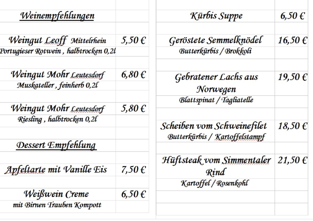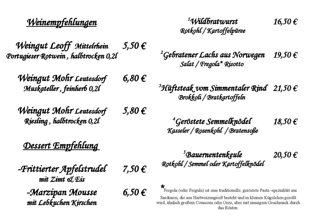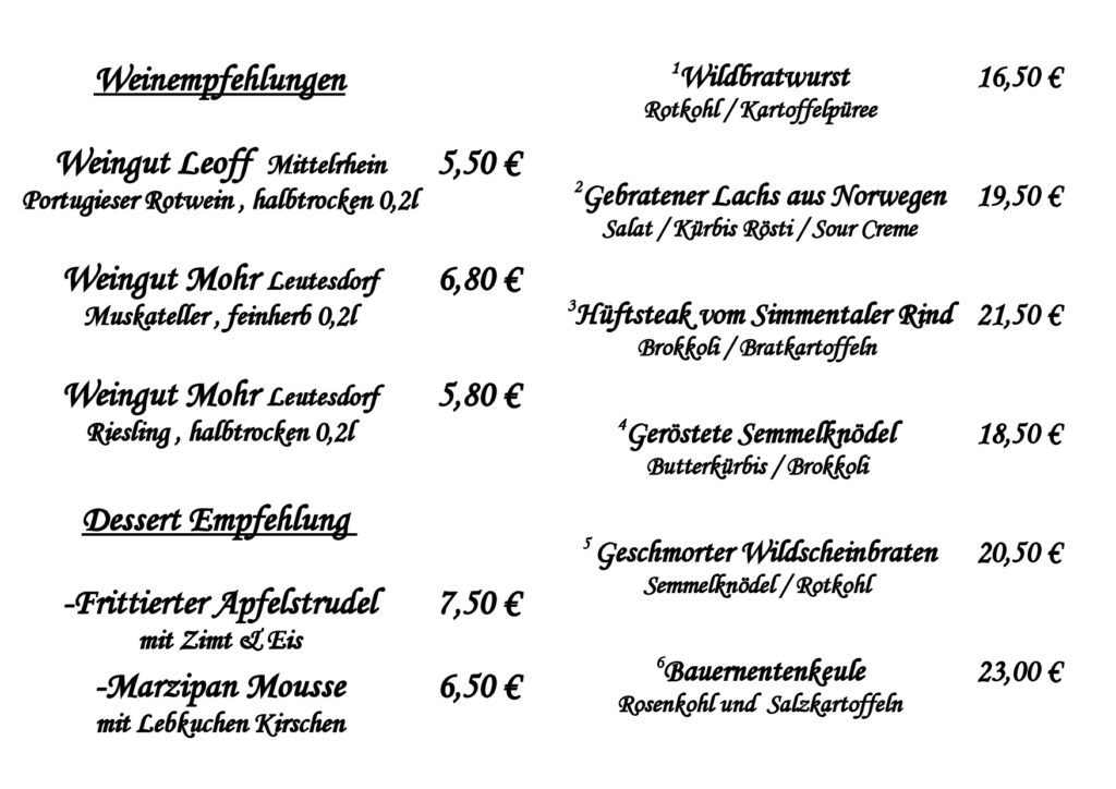 Lieber Besucher, es kann vorkommen, dass an manchen Tagen keine Tageskarte verfügbar ist. In einem solchen Fall stehen euch alle Speisen aus unserer aktuellen Speisekarte zur Verfügung.